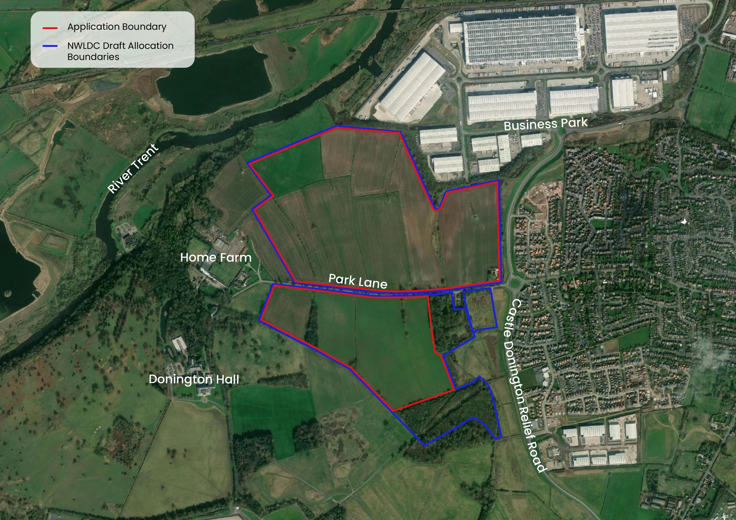 The site is a proposed mixed-use allocation for residential, employment and education provisions in the emerging NWLDC Local Plan. The site comprises two parcels of land to the north and south of Park Lane, to the west of Castle Donington. The mixed-use development of homes, a school, shops and open spaces will be supported by improved pedestrian and cycle routes, as well as new public transport links to connect the new neighbourhood with the rest of Castle Donington and the wider area.
